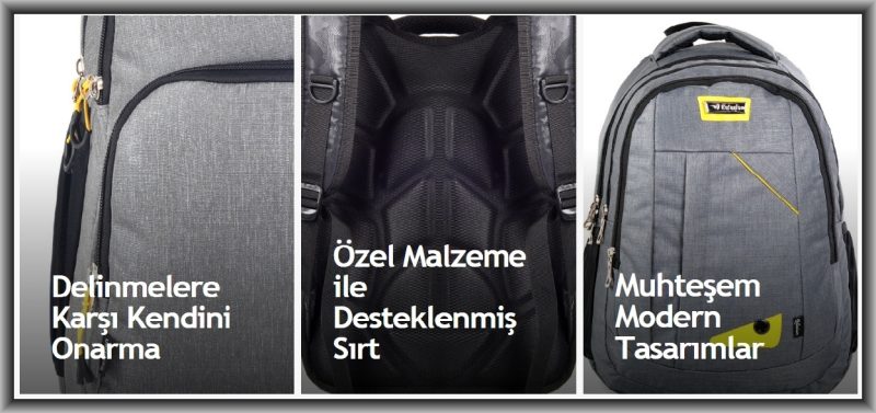 SYG 3 Bölmeli Su Geçirmez Kumaş Tablet Bölmeli Okul-Seyahat Sırt Çantası SYG2115-kırmızı